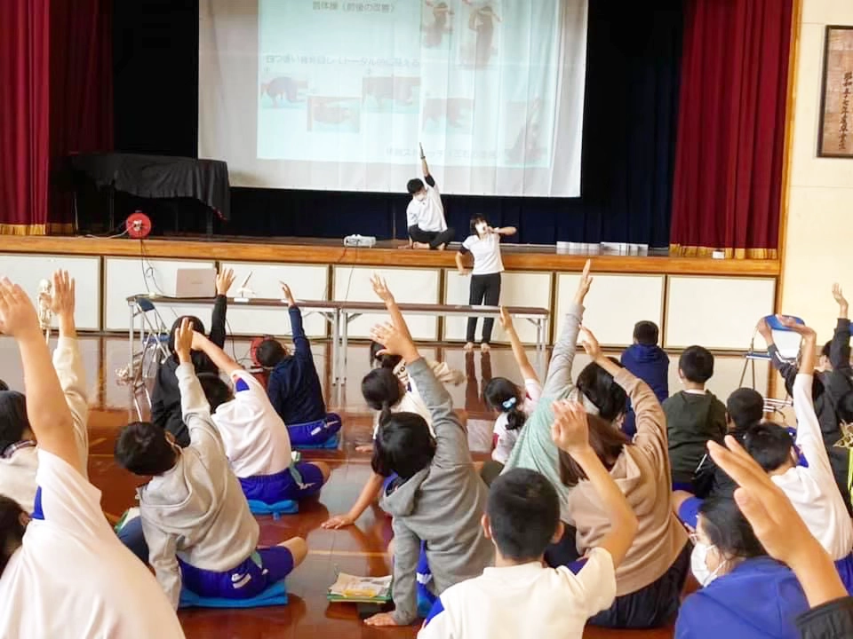 - 掛川市立日坂小学校にて姿勢作りのための運動指導