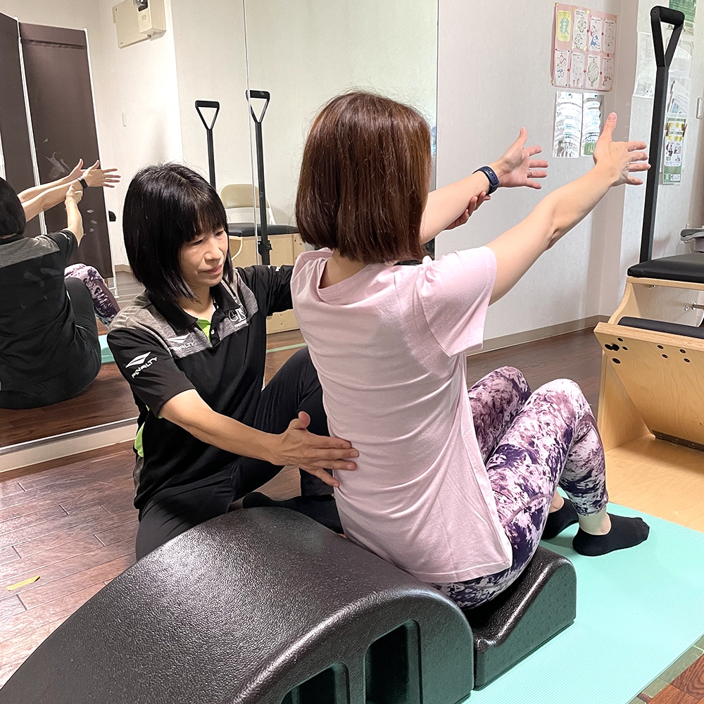 - 背骨、骨盤の修正誘導のための完全マンツーマンの運動指導
